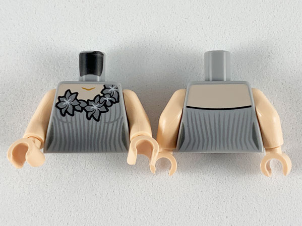 Torso Female Dress, Light Nougat Neck, Silver Flowers and Vertical Stripes Pattern / Light Nougat Arms / Light Nougat Hands