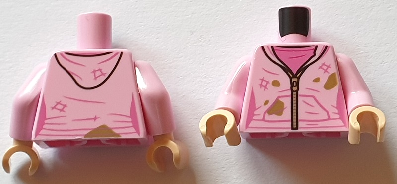 Torso Female Jacket with Hood and Silver Zipper over Dark Pink Shirt, Dark Tan Dirt Stains Pattern / Bright Pink Arms / Light Nougat Hands