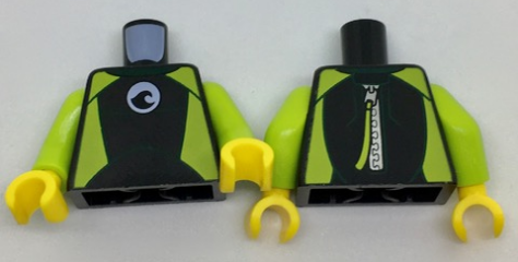Torso Wetsuit with White Logo, Lime Sides and Silver Zipper with Cord on Back Pattern / Lime Arms / Yellow Hands